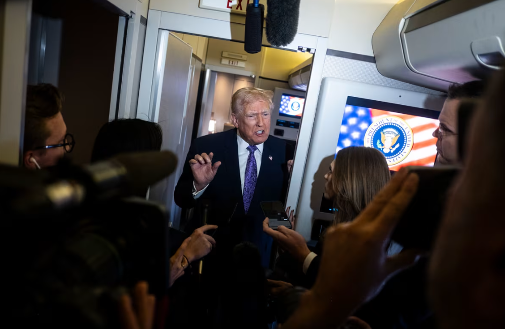 △特朗普11月30日在总统专机上说,他不期望对涉嫌运毒的船上的生还者进行二次冲击(图源:美国有线电视新闻网)