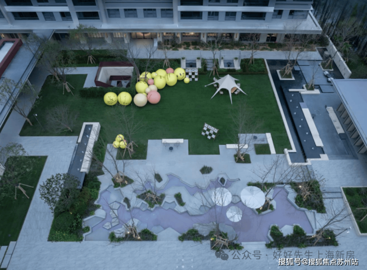 内部生活场景及配套也很丰富:阳光草坪,搭个天幕就能露营;心爱的“毛孩子”也有了玩耍的去处;边上还有小朋友的戏水池,挽起裤腿就能踩水玩。