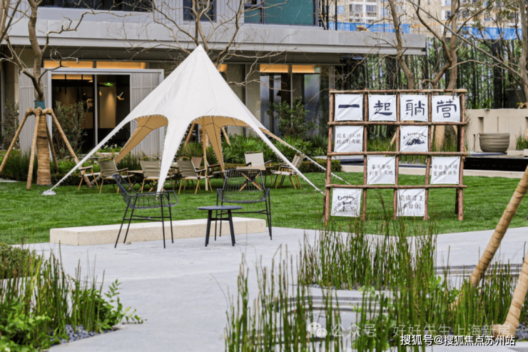 阳光草坪,搭个天幕就能露营,心爱的“毛孩子”也有了玩耍的去处;边上还有小朋友的戏水池,挽起裤腿就能踩水玩。