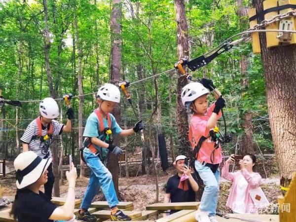 6月12日,连云港市首家“飞越森林”冒险乐土在连云区宿城枫树湾正式开园。这一“树上探险乐土”,招引了很多家长带上孩子一同来到枫树湾敞开森林冒险之旅,景区内不时传来舒畅高兴的尖叫声。